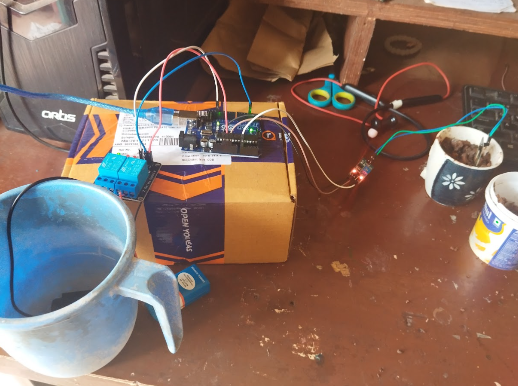 Praneet made a high-tech smart irrigation working model for his houseplants. His model used a soil moisture sensor that sent moisture readings to the microprocessor.The microprocessor switched the water pump on and off based on low/high moisture readings